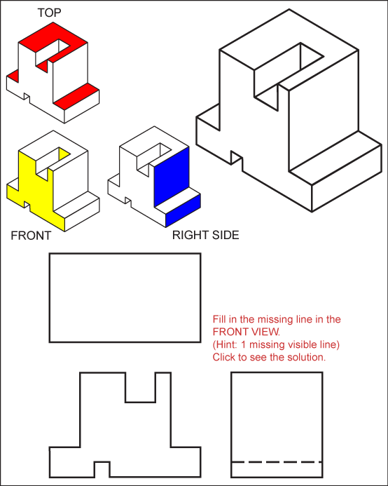 The objective of this exercise is get familiar with visualizing a three dimensional part in two dimensions.